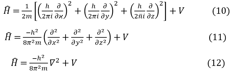 Now, applying the third postulate , we substitute our Hamiltonian from equation (11) into equation (1):