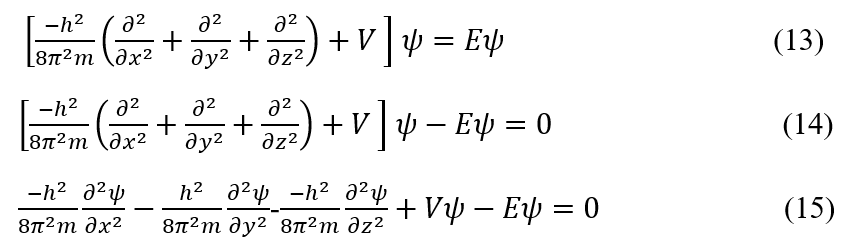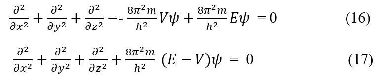 Equation (17) is the most popular form of the Schrodinger wave equation for three dimensional system. In the case of two and one dimensional systems first three terms can be reduced to two and one, respectively.