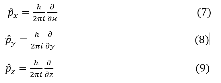 According to the second postulate, physical observables are represented by mathematical operators. The linear momentum operators for the three dimensions are: