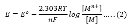 Nernst Equation is given by,