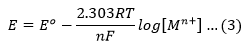 E = E° – (RT/nF) × ln(Q)