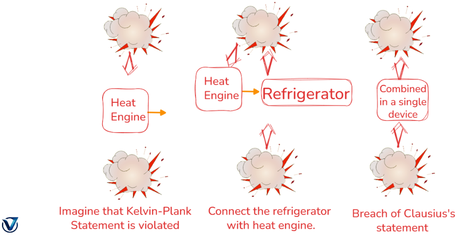 The statements made by Clausius and Kelvin are comparable, meaning that a device that violates Clausius’s statement will also violate Kelvin’s statement, and vice versa.