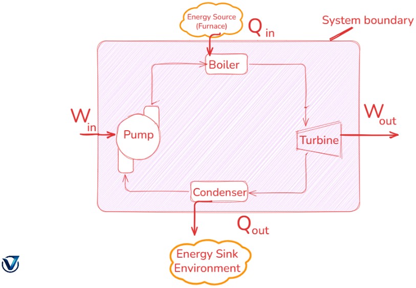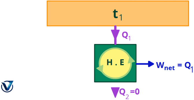 In a steam power station, the condenser is the apparatus that expels substantial amounts of waste heat to rivers, lakes, or the environment. One can inquire whether it is feasible to remove the condenser from the plant to conserve all that wasted energy. The response to this inquiry is unequivocally negative, as the absence of a heat rejection process in a condenser precludes the completion of the cycle. Cyclic equipment, such as steam power plants, cannot operate continually unless the cycle is fulfilled. This is illustrated subsequently with the aid of a basic heat engine.
